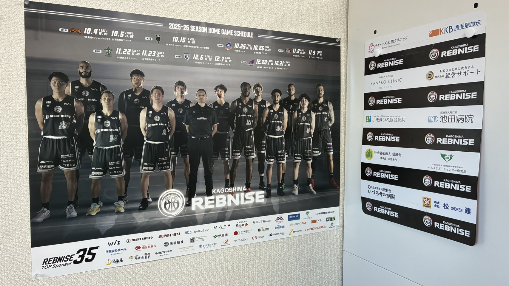 更新:画像のポスター、協賛広告のハリセンについては後日鹿児島レブナイズさまより受け取りました。